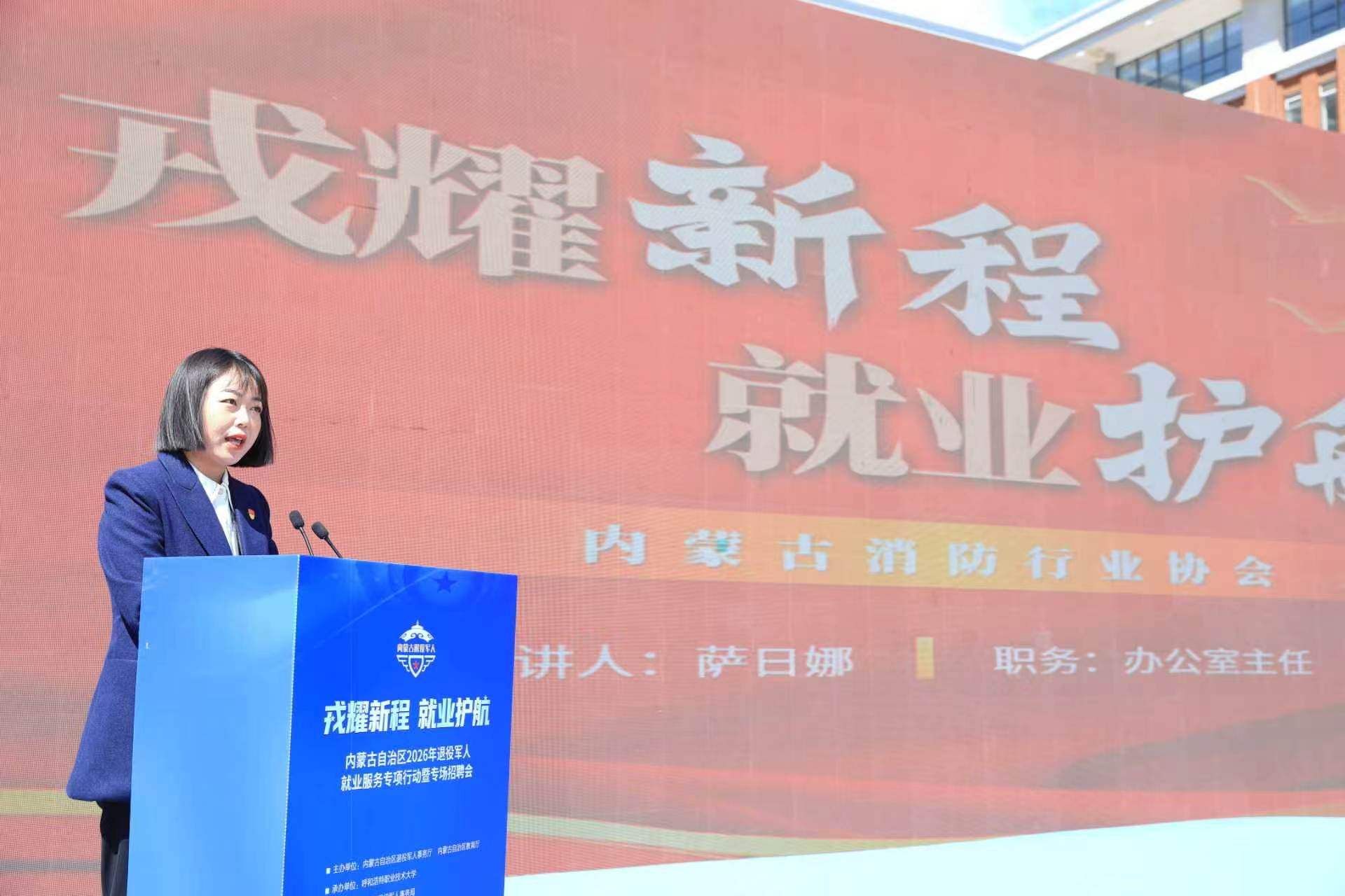 活动现场,协会副会长辛磊、张斌斌,办公室主任萨日娜出席启动仪式,全程参与招聘推介、政企签约等核心环节。萨日娜主任代表协会进行专项宣讲,围绕消防行业人才需求、退役军人就业优势、技能培训体系及职业发展路径等内容展开介绍,重点解读了消防设施操作员、消防安全管理员等岗位的从业前景与政策支持,为退役军人搭建起通往消防行业的桥梁,清晰展现了协会在行业人才培育与就业服务中的专业优势。